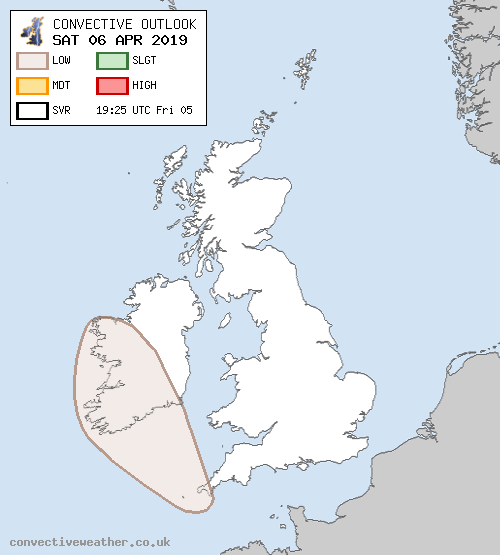 The associated cool mid/upper-levels with the aforementioned shortwave atop surface heating over southern and western Ireland will help generate a few hundred J/kg CAPE. However, main limiting factor is the fact that the shortwave is likely to move through before peak heating, so questionable as to how much of a favourable overlap will exist. Nonetheless, a few isolated showers seem possible for a time within a reasonably sheared environment, and hence at least a low risk of lightning.