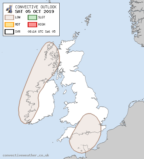 UPDATE 08:14 UTC Extended LOW threat level northwards into western Scotland